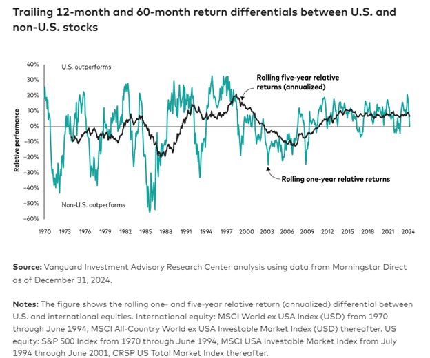 Average underperformance: cash vs. stocks